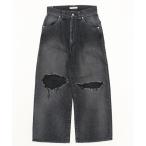 【SALE / 13%OFF】デニムパンツ メンズ レディース クラッシュ ダメージ加工 ワイドパンツ ストレート ジーンズ ストリート アメカジ カジュアル 韓国ファッション スケーター 古着MIX ブラック