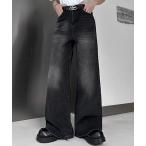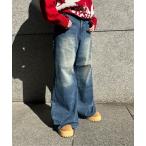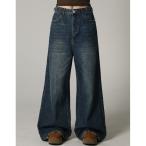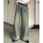 ジーンズ デニム デニムパンツ ダメージ加工 バギー スーパー ワイド ヴィンテージライク 韓国 古着風 ウォッシュ デニムパンツ レディース メンズ