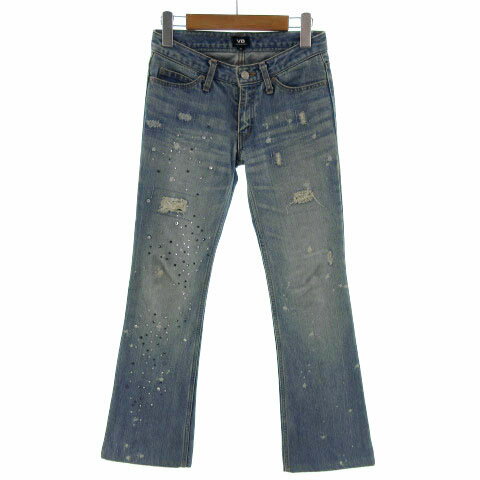 【中古】ビアッジョブルー Viaggio Blu ジーンズ デニム 裾フレア ユーズド加工 ダメージ加工 ペンキ加工 ラインストーン 日本製 ブルー 青 0 レディース 【ベクトル 古着】 220618