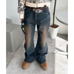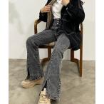 「slattgir」 加工ブーツカットデニムパンツ 76 グレー レディース