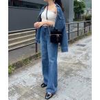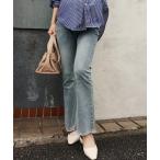 「Re:EDIT」 ブーツカットデニムパンツ SHORT ブルー レディース