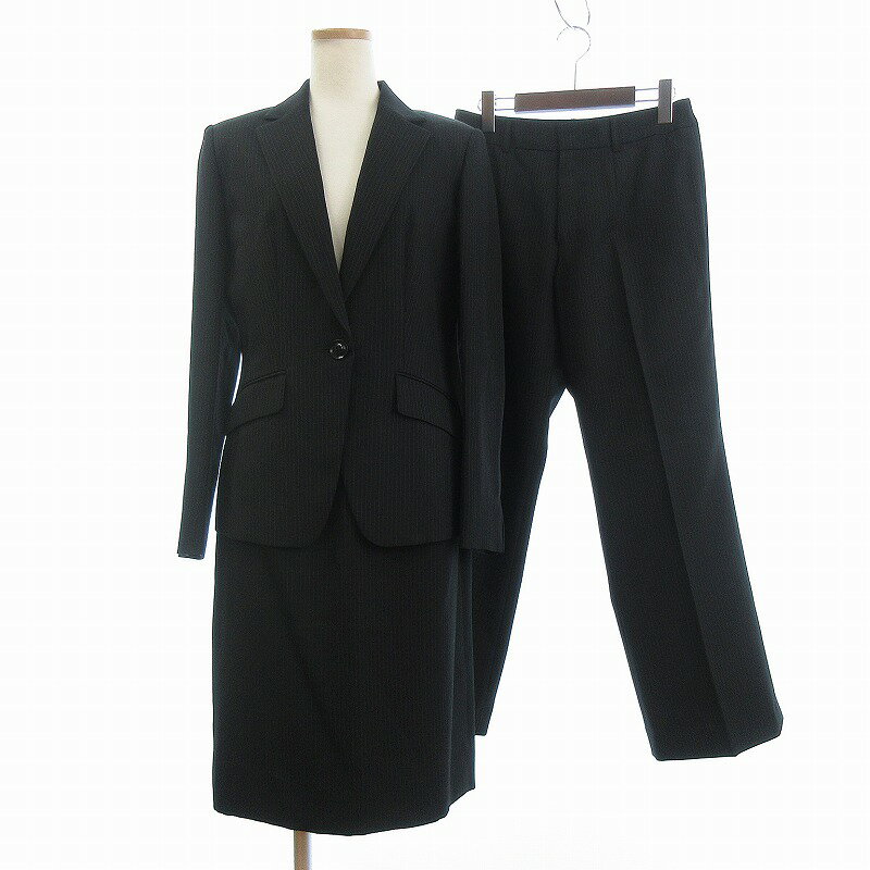 【中古】フェスミー FESMY 美品 スーツ セットアップ 3点 セット テーラードジャケット スカート パンツ 1B ひざ丈 ストライプ 13 ダークグレー 大きいサイズ ■FF レディース 【ベクトル 古着】 250723