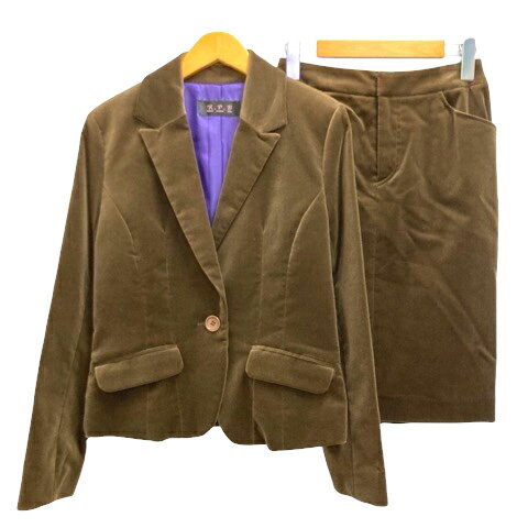 【中古】R.P.B スーツ セットアップ ベロア ジャケット スカート 長袖 膝丈 無地 1 茶 ブラウン レディース 【ベクトル 古着】 250717