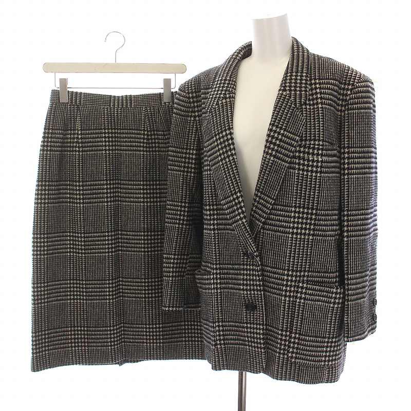 【中古】LEPORTE レポルテ 東京スタイル スーツ セットアップ 上下 グレンチェック テーラードジャケット 2B スカート ひざ丈 L 黒 ブラック 白 ホワイト /YM ▲H レディース 【ベクトル 古着】 250117