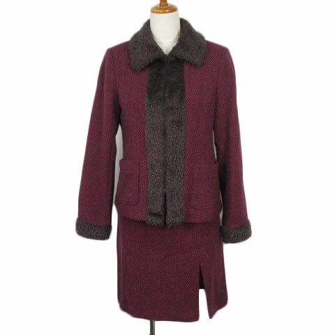 【中古】エムケー ミッシェルクラン MK MICHEL KLEIN スーツ ジャケット スカート スリット ニット ボア ウール 38 ボルドー レディース 【ベクトル 古着】 201125 ベクトルプレミアム店