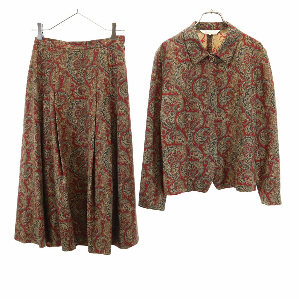 古着 Burberrys バーバリーズ 90s ウール オールド 総柄 スカートスーツ 上下 セットアップ 11/9 赤系 レディース 【中古】 【PD】