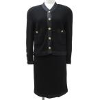 美品 クリーニング済み CHANEL シャネル ヴィンテージ カメリアボタン ジャケット+スカート セットアップ スーツ 20628 ブラック レディース 古着 中古
