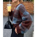 ニット セーター 「JaVaジャバ コラボ」古着風コーデが叶う。2wayミックスカラー糸バイカラーヘンリーニットプルオーバー レディース