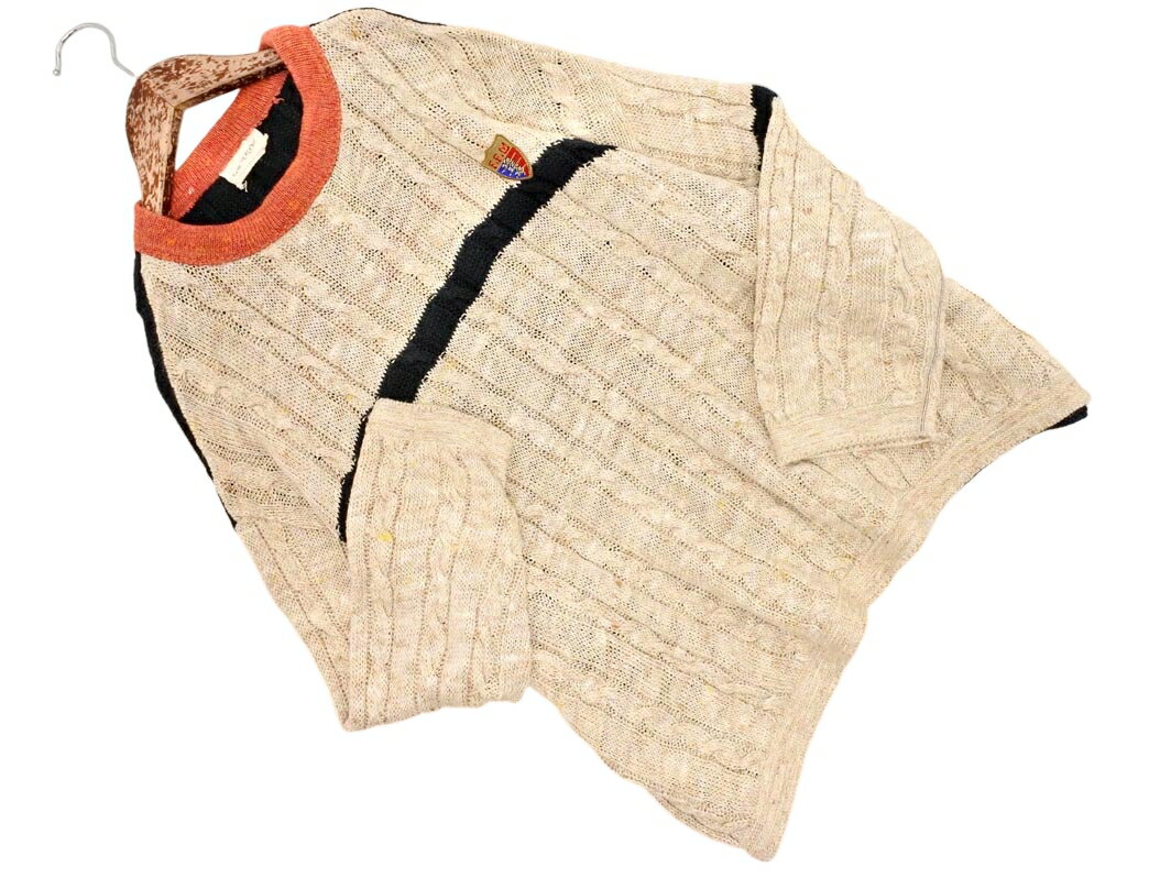 美品 45rpm 45アールピーエム 70280071 リネン混 トリコロール ケーブル編み ニット セーター ベージュ ■◇◎ ☆ fjc2 レディース【USED】【中古】【古着】【ブランド古着買取・販売ABJ】