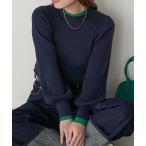 ニット セーター 「JaVaジャバ コラボ」古着風コーデが叶う。2wayミックスカラー糸バイカラーヘンリーニットプルオーバー レディース