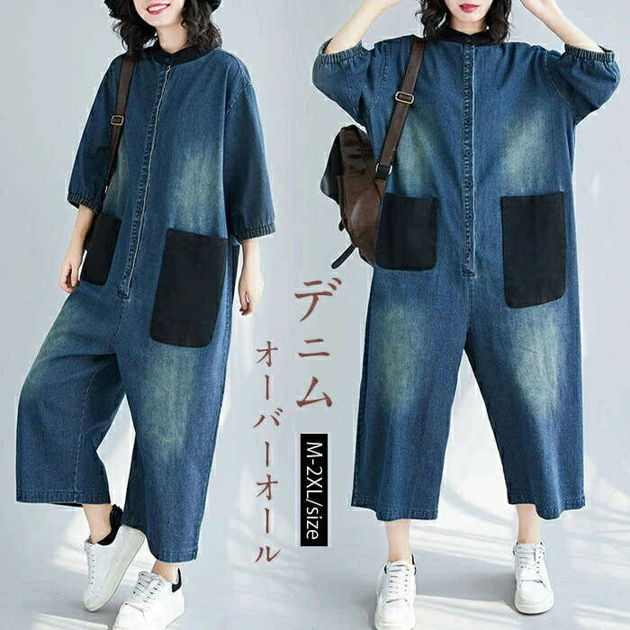 デニム つなぎ レディース デニム オールインワン デニムパンツドレス 連体服 パンツドレス オーバーオール デニムオールインワン 長袖 ロングパンツ ツナギ 古着風 マタニティ ゆったり目 送料無料
