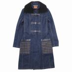 未使用 21aw HERMES エルメス ムートン レザーカラー 2way レザーコンビ デニムロングコート アウター 34 インディゴブルー レディース 古着 中古
