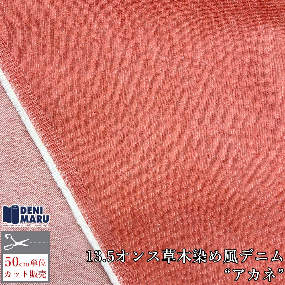 デニム生地 13.5オンス カラーデニム 草木染め風 天然染め風 アカネ 茜色 ピンク オレンジ ジーンズ 手芸 ハンドメイド 古着 ヴィンテージ 商用利用可能 デニム 生地 レトロ 日本 岡山 井原デニム デニム工場直売 でに丸
