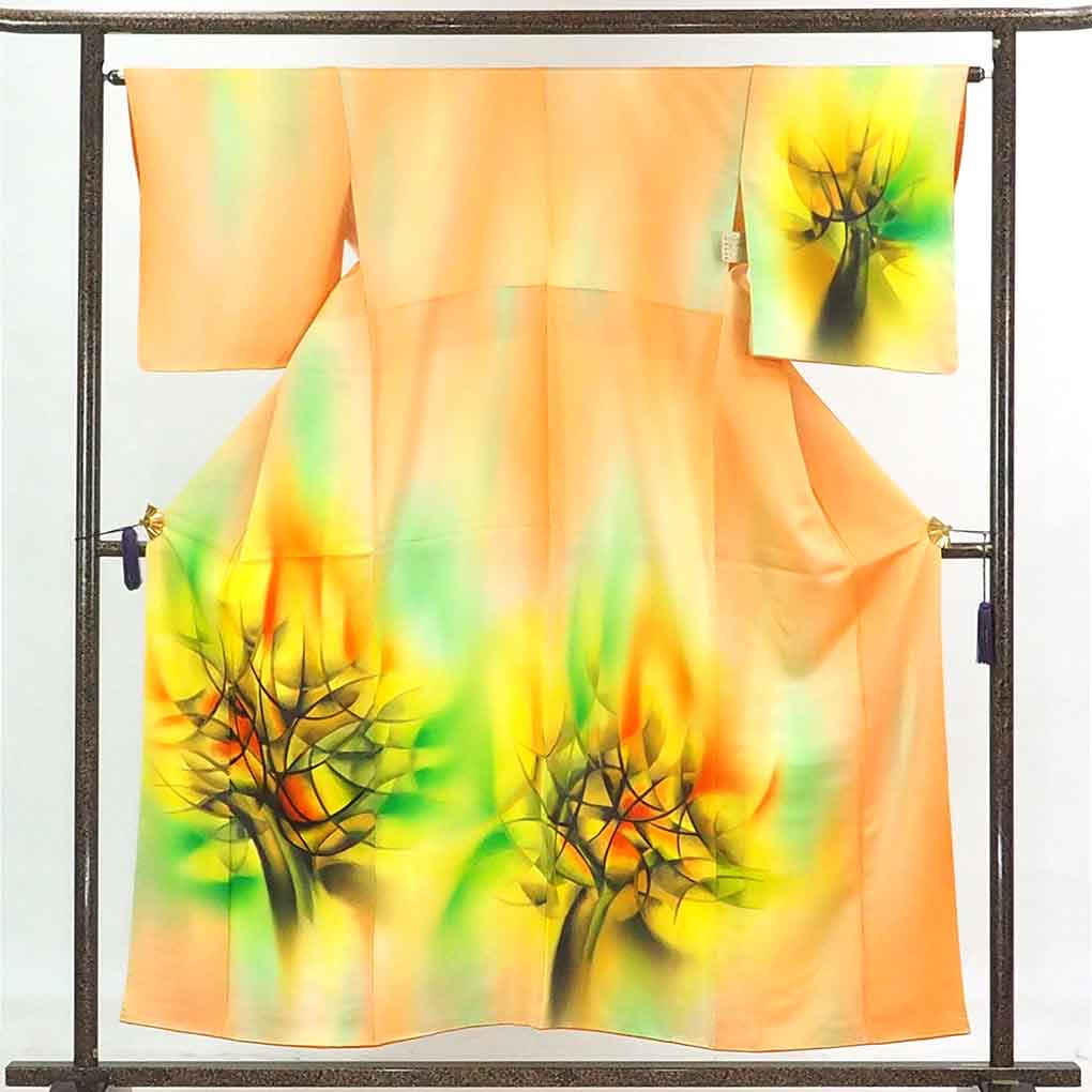 【SS30%OFF】【中古】訪問着 リサイクル着物 身丈155cm 裄64cm 前幅24cm 後幅29.5cm 袖丈49cm 正絹(シルク) レディース 袷仕立 秋冬春用 オレンジ地 裄Mサイズ 美品 リユース