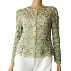 美品/ベルソフィア Bell Sophia フォーマルジャケット 表記 9号 М 相当 古着 シルバー系 レディース 春 夏 長袖 ラメ 刺繍 単品 ノーカラー
