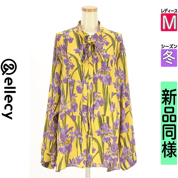 \14周年感謝祭★15%OFFクーポン/ アンドエルシー &ellecy ブラウス レディース 冬 長袖 イエロー M タイ付きオーバーサイズシャツ 【中古】【古着】【人気】
