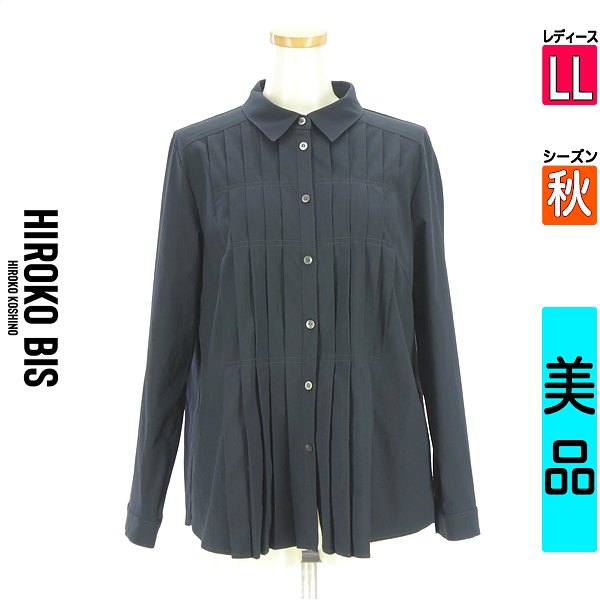 \14周年感謝祭★15%OFFクーポン/ ヒロコビス HIROKO BIS ブラウス レディース 秋 長袖 紺色/ネイビー LL ストレッチタックシャツ 【中古】【古着】【人気】