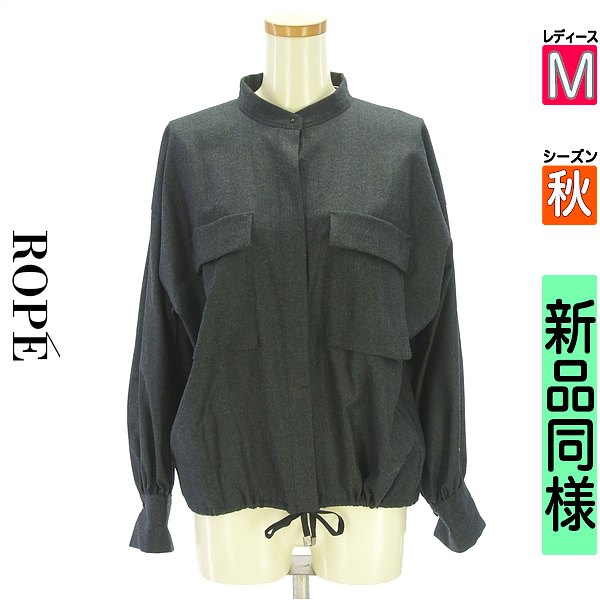 \14周年感謝祭★15%OFFクーポン/ ロペ ROPE ブラウス レディース 秋 長袖 グレー M 三尋木奈保さんコラボ バンドカラーウールシャツ 【中古】【古着】【新着】