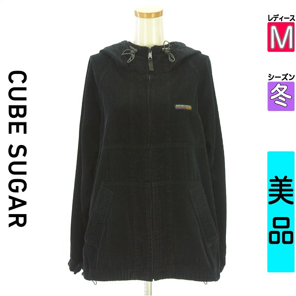 \14周年感謝祭★15%OFFクーポン/ キューブシュガー CUBE SUGAR ブルゾン スタジャン レディース 冬 ブラック M ジップアップコーデュロイブルゾン 【中古】【古着】【セール】
