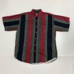 【古着】COLISEUMCLASSIC Yシャツ ストライプ 半袖 レッド ネイビー グリーン ワイシャツ Mサイズ