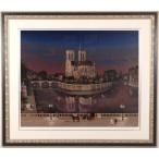 ミッシェル・ドラクロワ 夜のノートルダム パリ 絵画 風景画 フランス インテリア シルクスクリーン 版画 新築祝い 開店祝い 新品額付き