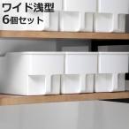 キッチン収納 吊り戸棚ボックス ワイド浅型 ホワイト 6個セット | パントリー 吊戸棚 収納 ストッカー ボックス 収納ケース 取っ手付き