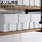 キッチン収納 吊り戸棚ボックス スリム浅型 ホワイト 6個セット | パントリー 吊戸棚 収納 ストッカー ボックス 収納ケース 取っ手付き