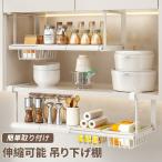 吊り下げ棚 バスケット 伸縮 吊り戸棚収納ラック 吊り戸棚下ラック おしゃれ 耐荷重 簡単取り付け キッチン 収納 ラック 吊り棚 吊戸下 はさみ棚 戸棚下収納