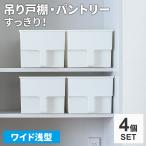 キッチン収納 吊り戸棚ボックス ワイド 4個セット ホワイト / クリア | パントリー 吊戸棚 収納 ストッカー ボックス 収納ケース 食器棚