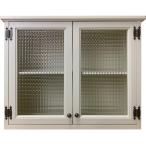吊り戸棚 桟入り チェッカーガラス扉 アンティークホワイト w64d25h40cm パンプキンノブ 壁掛けキャビネット 木製 ひのき ハンドメイド オーダーメイド