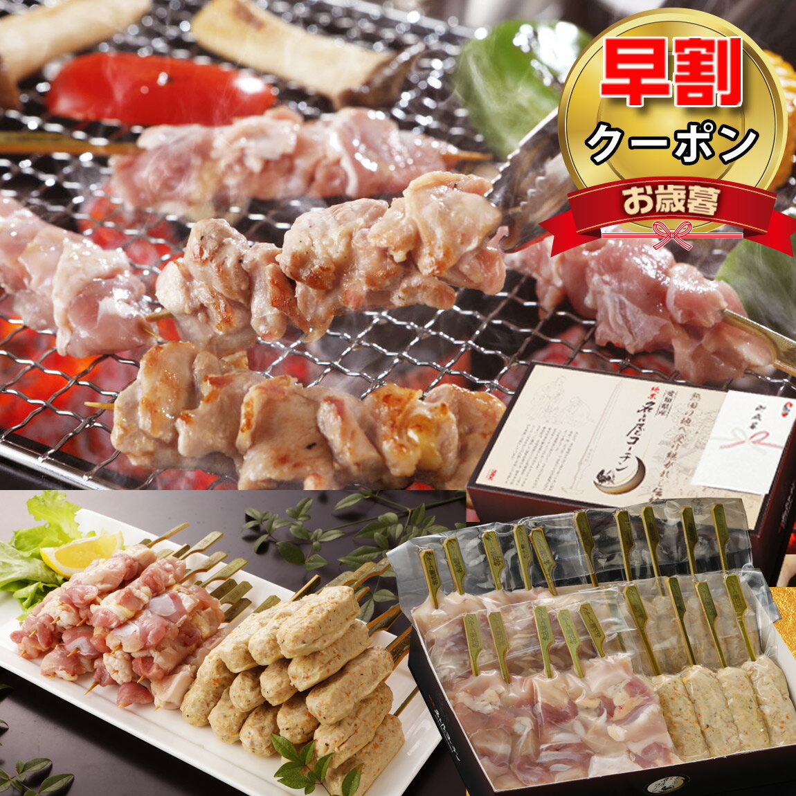 【早割 5%OFFクーポン】 お歳暮 御歳暮 純系 名古屋コーチン 正肉 (モモ ムネ)串 つくね串 計20本 焼き鳥 セット ギフト やきとり 冷凍 塩 たれ 化粧箱 業務用 大容量 BBQ キャンプ おつまみ 国産 高級 地鶏 のし お取り寄せ グルメ 結婚 出産 内祝い 誕生日 お祝い お礼