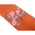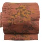 【中古】名古屋帯 正絹 渋赤地に枝花文様 夏帯