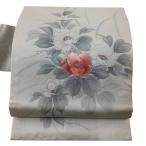 名古屋帯 優品 弔事向き 色喪帯 草花 立涌 灰色 正絹 中古