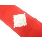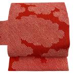 名古屋帯 優品 雲文 地紋 絞り 朱色 正絹 中古