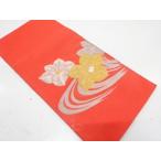 名古屋帯 優品 枝花 金彩 赤 正絹 中古