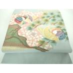 平和屋着物●塩瀬 九寸開き名古屋帯 友禅 作家物 花鳥文 正絹 逸品 未使用 CABD0417hy