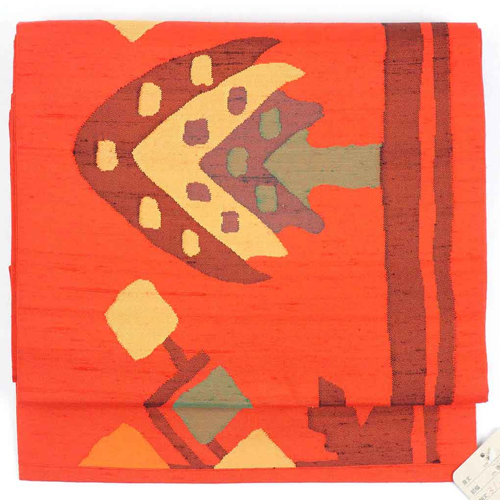 【SS30%OFF】【中古】名古屋帯 リサイクル着物 幅31cm 長さ357cm 正絹(シルク) レディース 秋冬春用 オレンジ地 フリーサイズ 美品 リユース