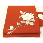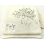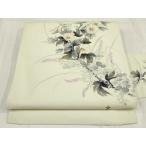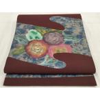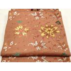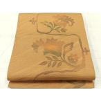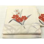 平和屋着物◎塩瀬 九寸名古屋帯 草花文 正絹 逸品 AABG0134uk