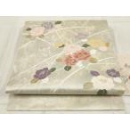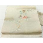 平和屋着物◎九寸名古屋帯 刺繍 草花文 金糸 銀彩 正絹 逸品 AABG0180uk