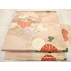 平和屋着物◎九寸開き名古屋帯 檜扇花文 金銀糸 正絹 逸品 AABF6518uk