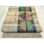 平和屋着物◎八寸名古屋帯 紬地 幾何学文様 正絹 逸品 AABH1199wj