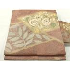 平和屋着物◎九寸名古屋帯 草花文 金銀糸 引箔 正絹 逸品 AABG0144uk