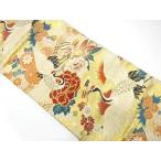 ys7709541; 鶴に桧扇・草花模様織り出し名古屋帯(材料)【アンティーク】【着】