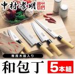 包丁5本セット 木箱入り 中村孝明 監修 刺身包丁 菜切包丁 万能包丁 ペティナイフ 小出刃包丁 調理器具 キッチンツール ナイフ ギフト 魚さばく 3枚おろし 敬老の日 送料無料 送料込 80S◇ 中村孝明 和包丁5点セット