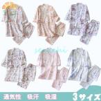 パジャマ ルーームウエア 浴衣 和風 花柄 女性 寝間着 ストライプ 上下セット 綿 和服 部屋着 寝巻き ガーゼセット 前開き 春 秋 夏 通気性 吸汗 吸湿