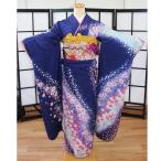 振袖 中古 フルセット 成人式 正絹 一式 格安 リサイクル 着物 和服 和装 仕立て上がり 青 紺 ブルー ネイビー