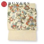 中古 名古屋帯 九寸 正絹 ベージュ 名古屋仕立て 草花柄 和装 呉服 和服 きもの レディース 女性