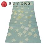 中古 名古屋帯 しつけ糸あり 正絹(金銀糸除く) ブルー系 紅葉柄 お洒落 松葉仕立 和装 呉服 和服 きもの レディース 女性