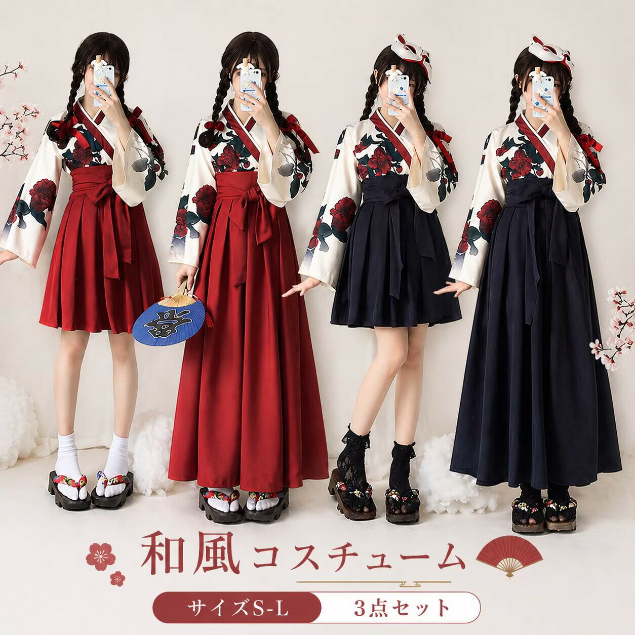 コスチューム 浴衣 着物 和服 大人用 衣装 コスプレ 袴 スカート 巫女 コスプレ衣装 和風 ミニ ロング コス ロング レディース 和装 巫女さん セット 矢羽 ミニスカ 女性用 パーティ かわいい 着物風 可愛い コスプレハロウイン 仮装 イベント cosplay 舞台衣装