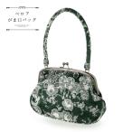 ベロア がま口バッグ 単品「深緑地、白レース模様」バッグ アンティーク調 カジュアル パーティー お洒落 普段使い 成人式 振袖 着物 和装 和服 (メール便不可)